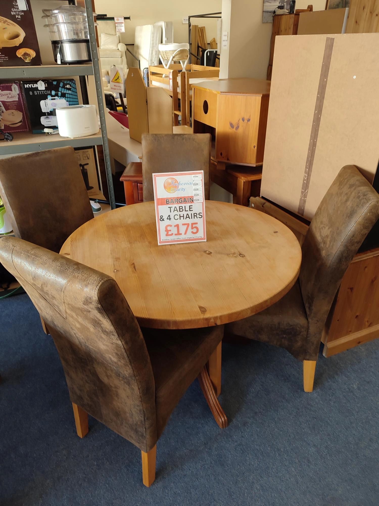 Nice pine circular dining table with 4 brown nubuck-style dining chairs in very nice condition. £175. Local delivery available for a small fee.