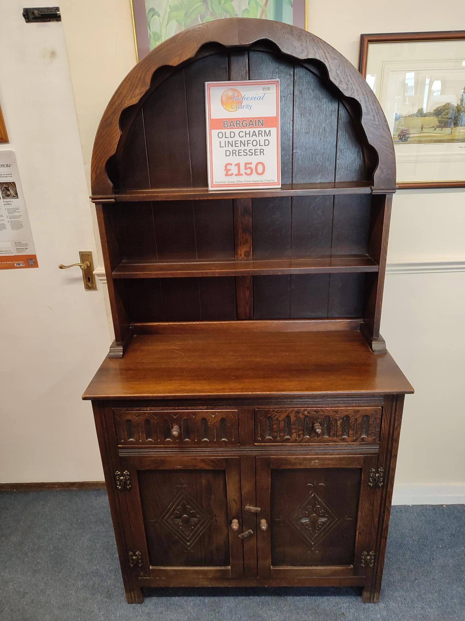 Nice Old Charm oak Linenfold Dresser. £150. Local delivery available for a small fee.